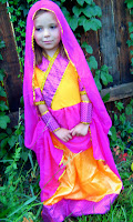 It was a little itchy but with a T-shirt under it then it was okay. Mom says I have to wear a T-shirt under it anyway because we will probably be snowing on Halloween. The Bollywood costume is nice and beautiful because it has the head thing and the head thing does not itch at all. It is very pretty. I love the pretty pink and I love the head thing and the sleeves that go with it. I also love to dance in it. I want to dance like the Bollywood dancers. I just love dancing! Buy It!