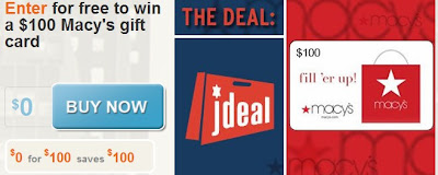 HURRY! jdeal has another Surprising deal today! If you hurry you will be able to purchase (For FREE) a Chance to win a $100 Macy’s Gift Card! But Hurry these deals only last a few hours before they take them away!