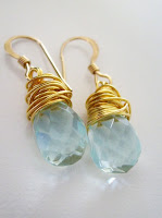 Classy, beautiful, and unique! Those are the three best words I can think of to describe Margo’s originals! I was given a pair of aqua quartz hand wire-wrapped earrings, with 14kt gold fill wire, and 14kt. gold vermeil ear wires to review and they are simply stunning. The earrings are firmly attached together and after much pulling and prodding nothing came loose. And the aqua quartz are hand wrapped in gold wire to add that special touch if decoration. I am very impressed with these earrings. They can also be worn for any occasion and are not heavy on my ears as some have been.