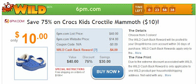 Here’s how it works! Just Visit ShopAtHome.com and make sure you are signed into your account! Then click the Buy Now Button to be taken to the 6pm.com website! When you purchase the Kids Croctile Mammoth Crocs you will then be credited back the $4.00 making them just $10! Remember when your ShopAtHome.com account reaches $20 they will send you a check!