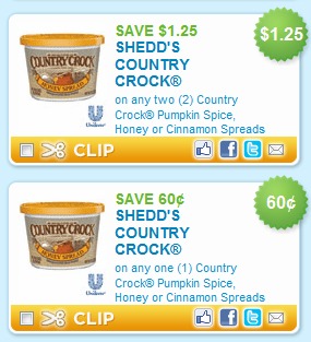 $1.25/2 Shedd’s Country Crock Pumpkin Spice, Honey or Cinnamon Spreads