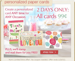 Wow! Check out this deal at American Greetings! For 2 Days only you can purchase paper cards for just $0.99 AND they will stamp and mail them for FREE! Don’t want them to mail it for you? That is ok as well! They will ship them to you for FREE as well! Hurry this deal will only last for 2 Day!