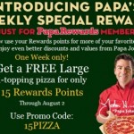 Just 15 (Reg. 25) Papa Johns Reward Points Get you a FREE Pizza – Deal Ends 8/2!